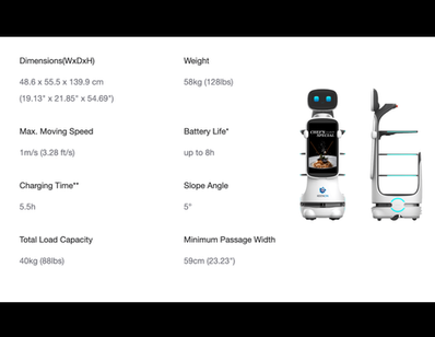 Efficiency in motion. With a nimble 0.8 m/s pace and robust 40 kg capacity, it's designed to navigate the liveliest venues without missing a beat. Powering through the longest shifts with a 12-hour battery life.